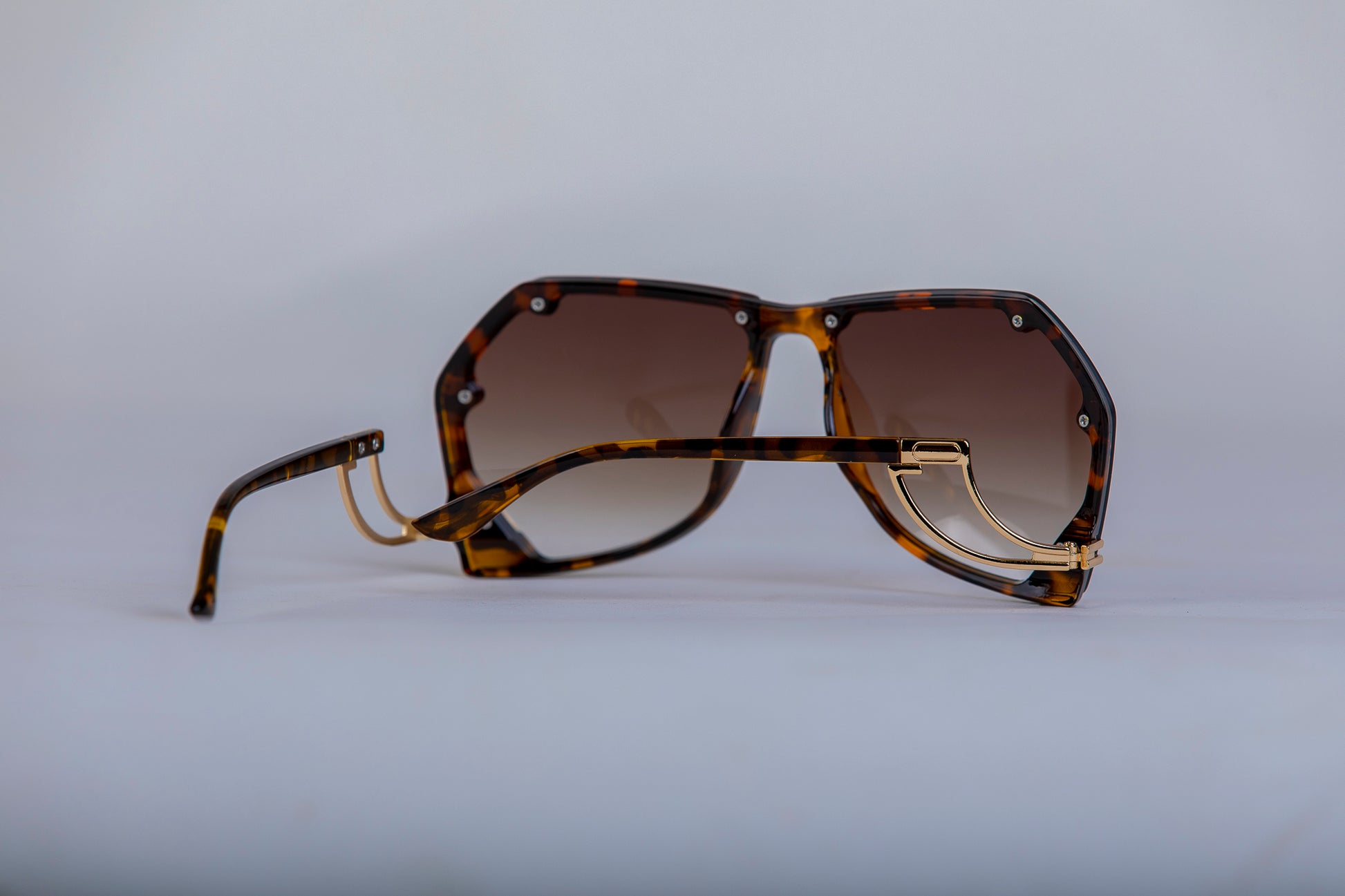 • Tortoiseshell & Gold Finish — Sculpted edges elevated with polished gold hardware detailing…