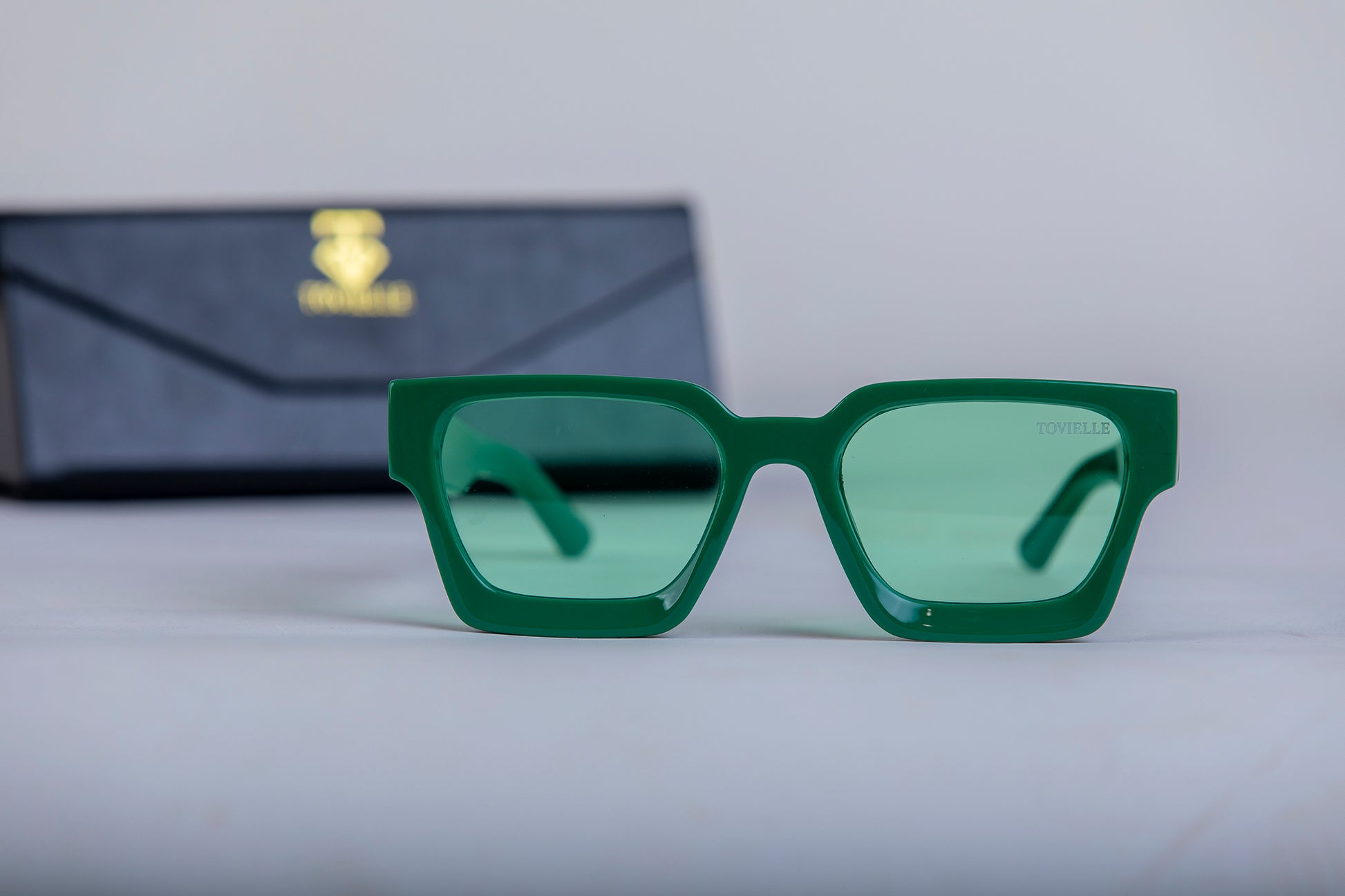 Bold, refined, and effortlessly unisex. The Emerald Icon sunglasses feature a structured square silhouette in rich translucent green, finished with signature gold Tovielle detailing. Designed for everyday confidence and fully compatible with prescription lenses…